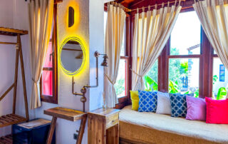 Banana Alaçatı konum olarak Alaçatı ‘nın en kaliteli mekanlarının, butiklerinin ve sanat gelerilerinin yer aldığı Hacımemiş bölgesine yürüyerek 4 dk mesafede yer alır. Etrafı muhteşem bir doğa ve ferah sokaklar ile çevrili olan otelimize araç ile kolaylıkla ulaşabilir ve aracınızı otelimizin önüne park edebilirsiniz. Havaş ve Çeşme Seyahat otobüs durağına taksi ile 1 dk mesafede yer alıyoruz. Ünlü Alaçatı pazarına ise yürüyerek 3 dk mesafedeyiz.
