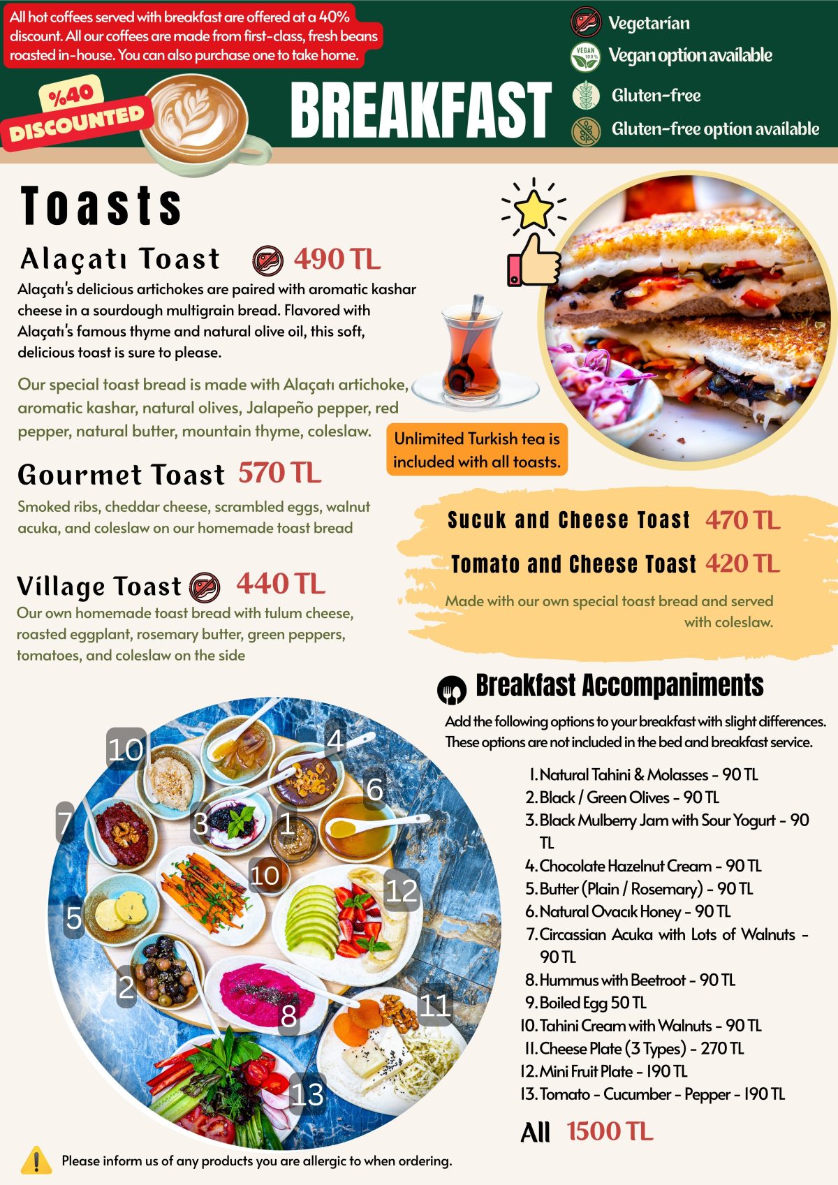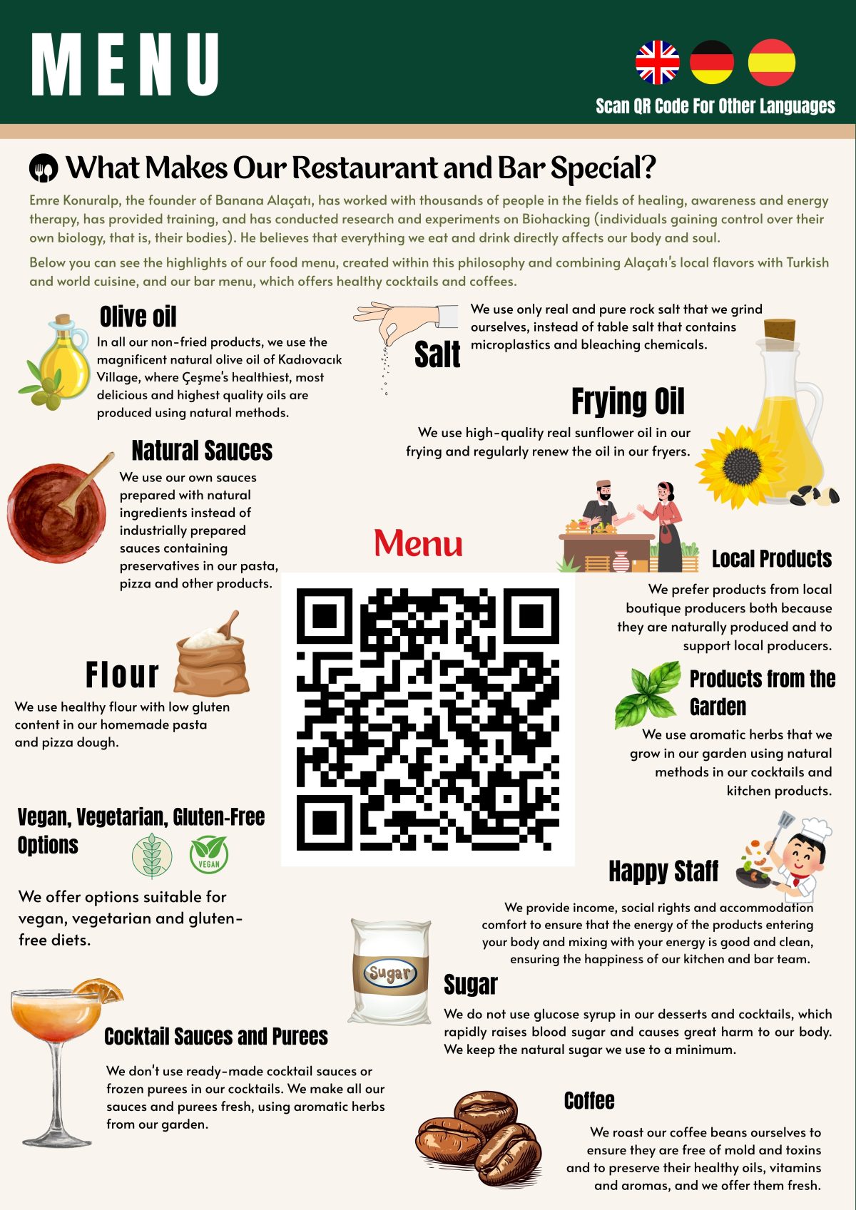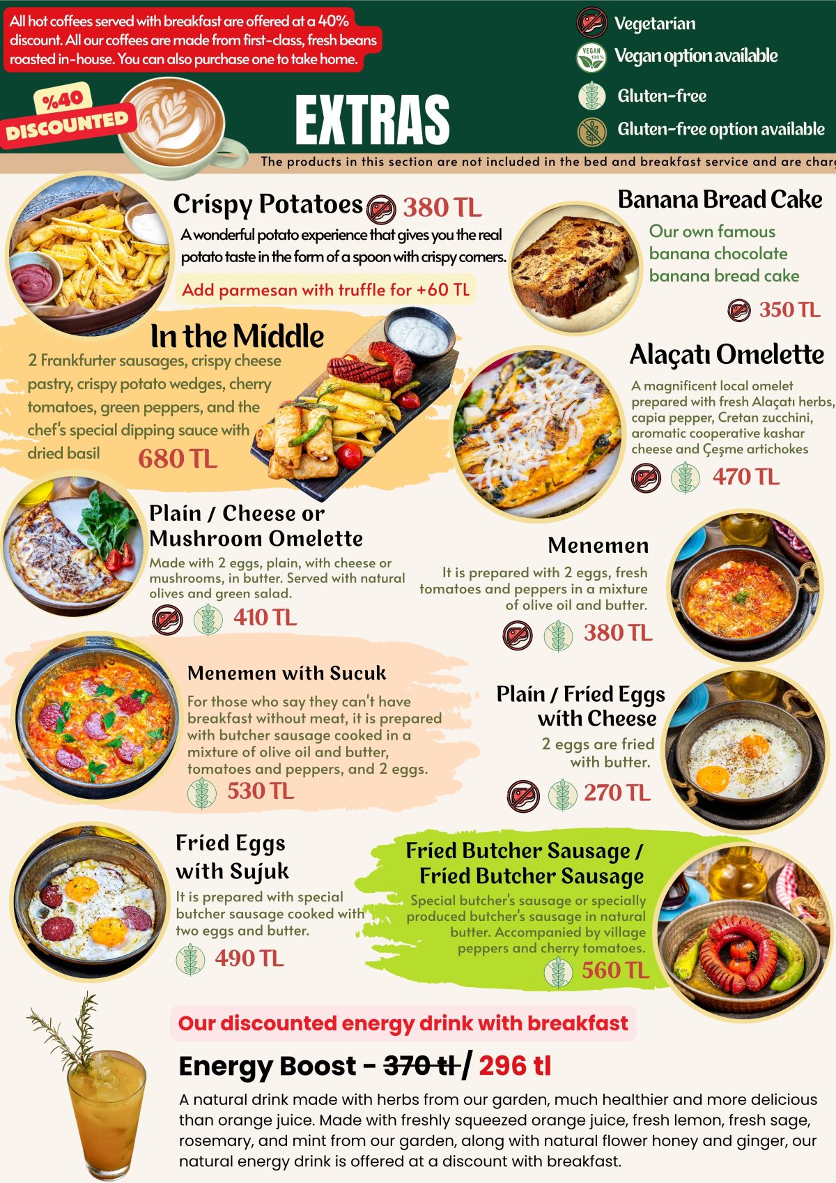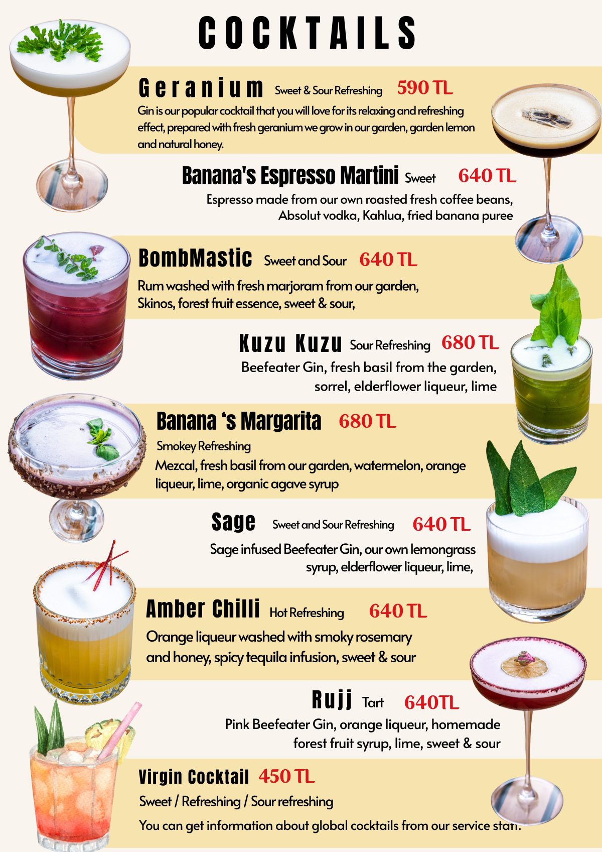 We offer a 20% discount on the prices below to our guests staying at Banana, one of Alaçatı’s highest-rated Breakfast, Dining & Cocktail Bar venues.