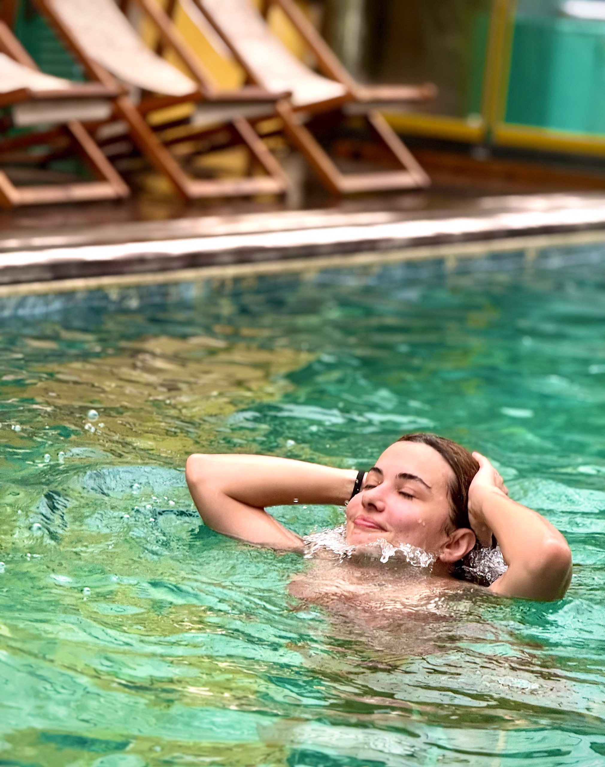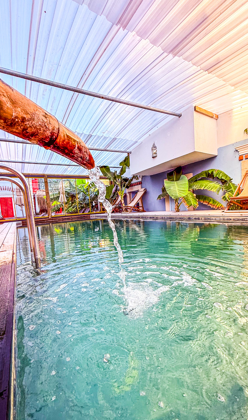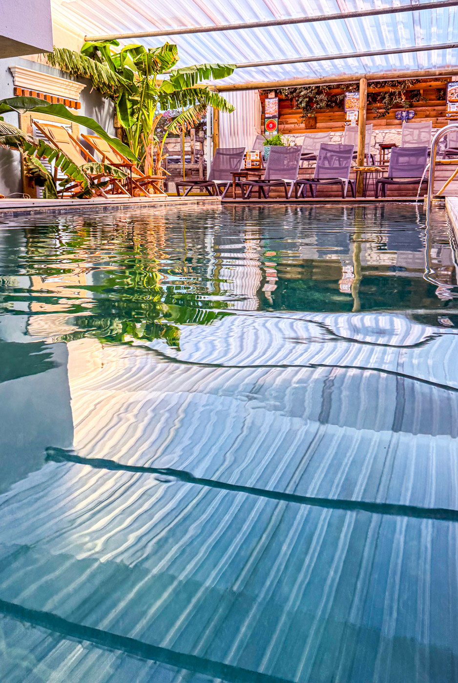 Alaçatı ‘da sıcak havuz deneyimi arayanlar 32 derece su sıcaklına sahip ekolojik havuzumuzu çok sevecek. Deniz tuzu ile doğal bir şekilde arındırılan ekolojik havuzumuzun tertemiz suyu aynı zamanda bakır çubuklar ile toprağa bağlanmıştır. Bu sayede yoğun deniz tuzunun da yardımı ile bedeninizde biriken tüm negatif enerjiyi alarak toprağa aktarır ve bu yolla sizi denize girmişsiniz gibi rahatlatır ve dengeler. Kış döneminde sıcacık bir ortamda dış etmenlere kapalı cam ile çevrili  ancak tamamen ışık alan bir alanda bulunan havuzumuzun suyu aynı zamanda mikron boyutunda kuvars mineralleri arasından geçirilir ve böylece enerjisi yükseltilir ve temizlenir.