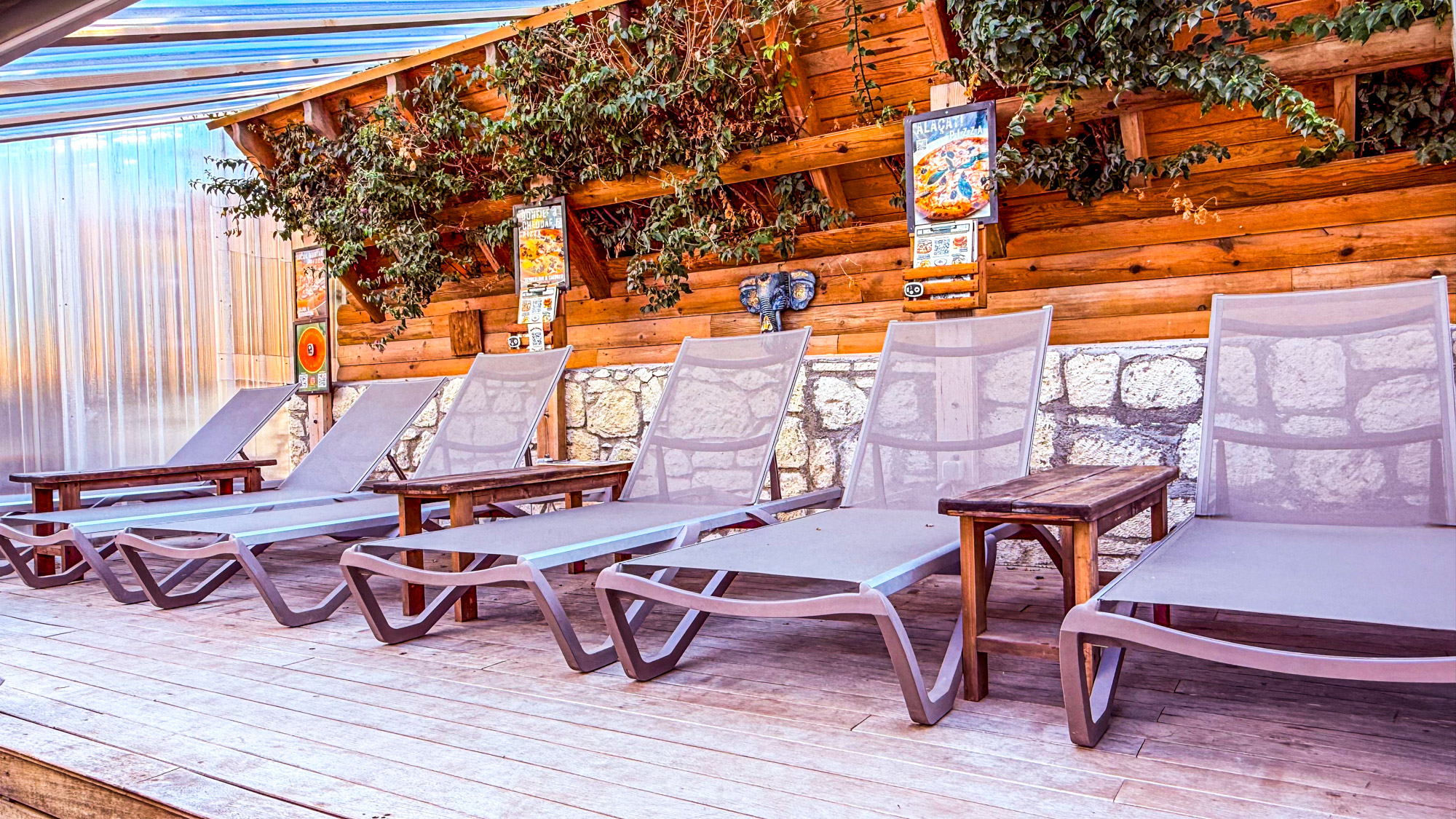 • Şezlonglar ve dinlenme alanlarında su sesi eşliğinde rahatlatan bir ortam sunar